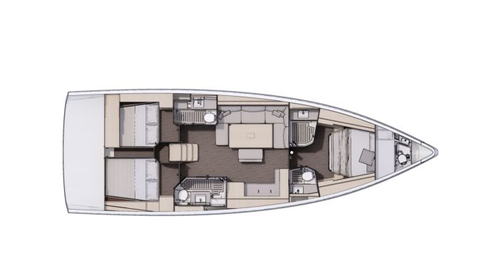 Jeder Segler findet, was er sucht, egal ob er mit einer großen oder einer kleinen Crew segelt. Die Design-Innovationen ermöglichen eine optimale Raumnutzung. So garantiert dieses Segelboot einfaches Segeln und bietet gleichzeitig höchst komfortable Schlafbereiche.